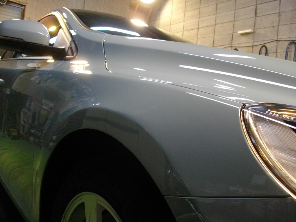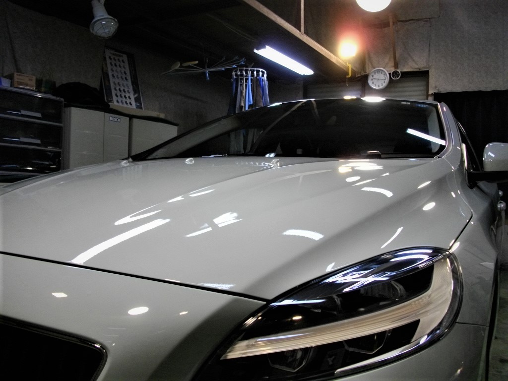 今日は、板金塗装修理から上がってきましたV40のボンネットと右フェンダーを磨き上げましてコーティング作業をしました。