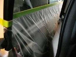内張りに洗剤や汚れが付着しますと取り 返しが付きません。完全にマスキングして 汚れの付着を防ぎます。