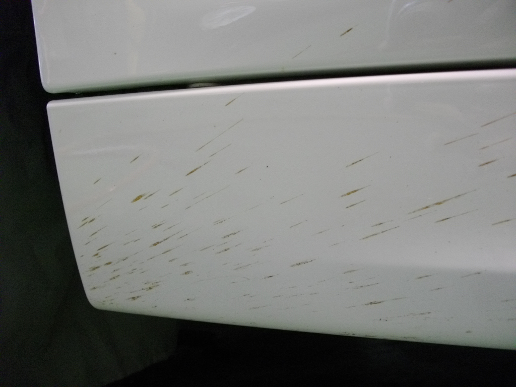 強力な油分系の汚れを跳ね上げた様子です。カーシャンプーでは全く落ちません。この様な汚れはコーティング施工していても落ちない場合が良くあります。